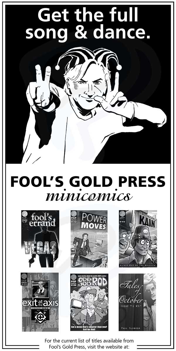 FGP (Fool’s Gold Press) Minicomics represent my earliest work as a comics author-illustrator. They’re not exactly “diamonds in the rough”… but they MIGHT be gold, depending on your point of view.
